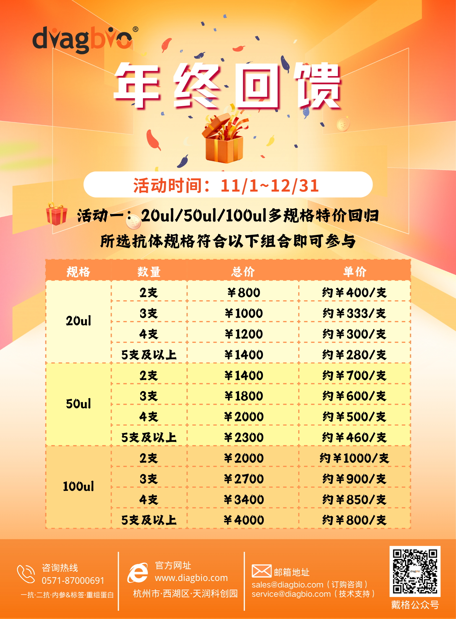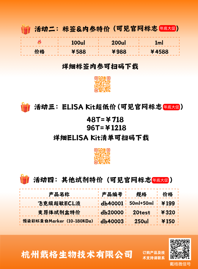 时至年终,为回馈新老客户,戴格生物给大家带来诚意满满的活动,助力科学研究!