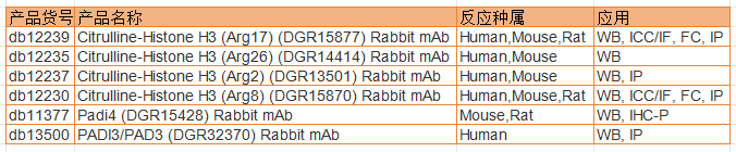 抗体-抗原反应:使用抗瓜氨酸化抗体(如anti-Cit-H3、anti-Cit抗体)进行Western blot、ELISA、免疫荧光/组化检测靶蛋白。