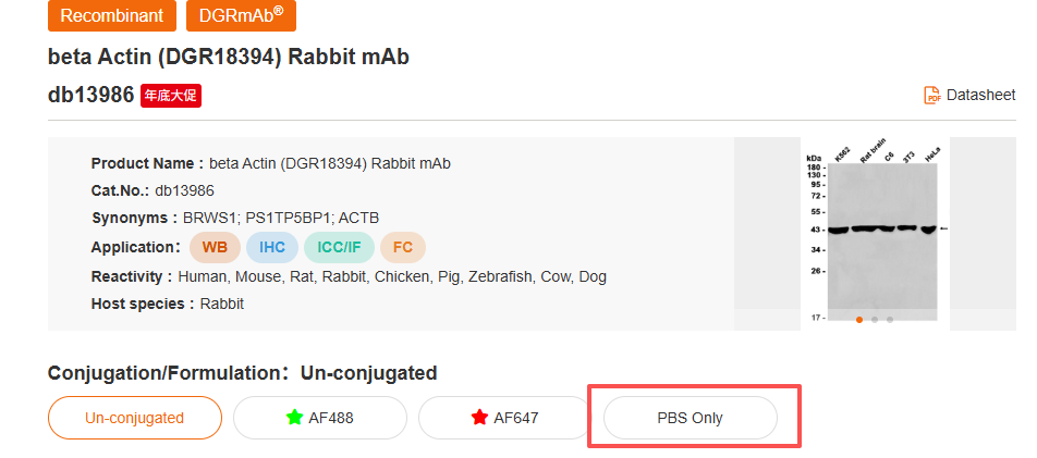 因此,针对特定实验需求,需选择PBS Only抗体产品。