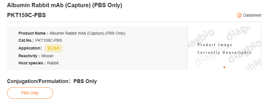 ③当我们想知道自己想找的靶标是否有PBS Only配方,可以查看对应靶标的标准抗体的产品详情页,下方是否有“PBS Only”按钮。