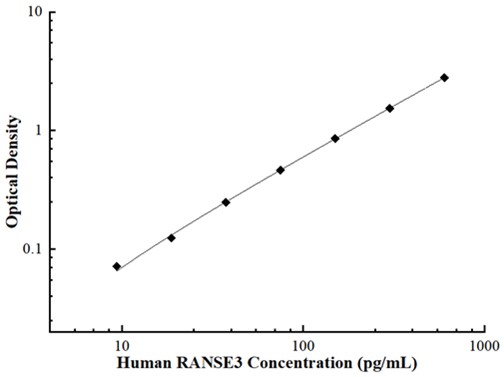 Example of Human RNASE3 standard curve. Background-subtracted data values (mean +/- SD) are graphed.
