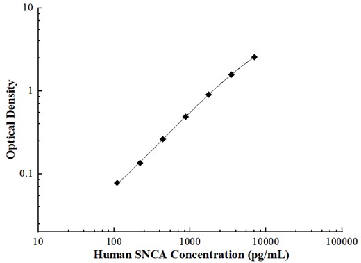 Example of Human SNCA standard curve. Background-subtracted data values (mean +/- SD) are graphed.