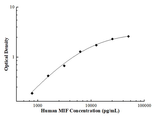 Example of Human MIF standard curve. Background-subtracted data values (mean +/- SD) are graphed.