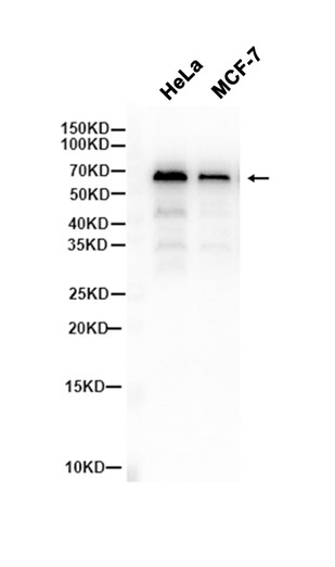 Western blot analysis of extracts from HeLa,MCF-7 cells using db11146 at 1:1000.