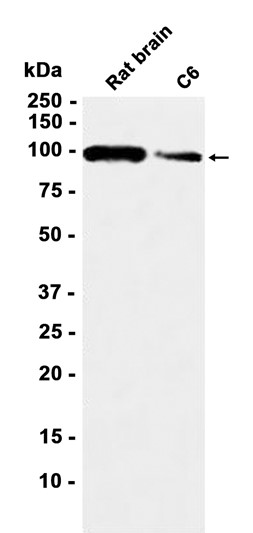 Western blot analysis of extracts from C6 cells and Rat brain tissue using db11171 at 1:1000.