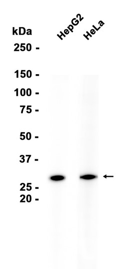 Western blot analysis of extracts from HepG2,HeLa cells using db11358 at 1:1000.
