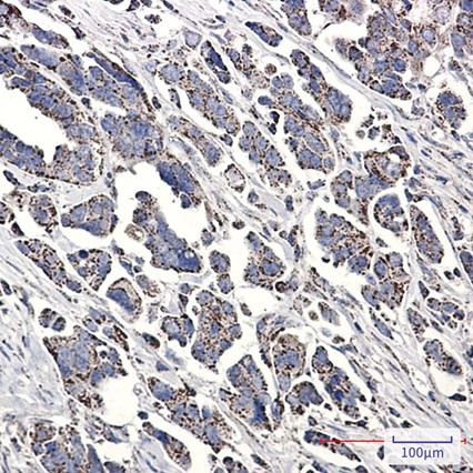 Immunohistochemical analysis of paraffin-embedded human Cholangiocarcinoma using db11397 antibody.