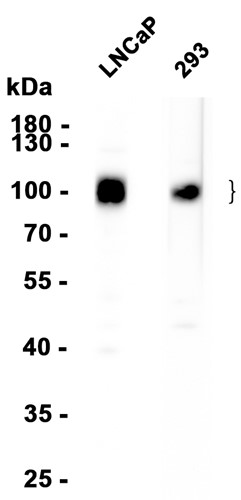 Western blot analysis of extracts from LNCaP,293 cells using db11670 at 1:1000.