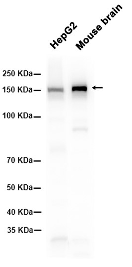 Western blot analysis of extracts from HepG2 cells and Mouse brain tissue using db11724 at 1:1000.