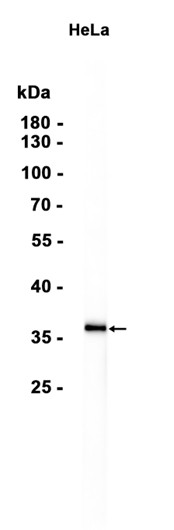 Western blot analysis of extracts from HeLa cells using db11729-HRP at 1:50000.