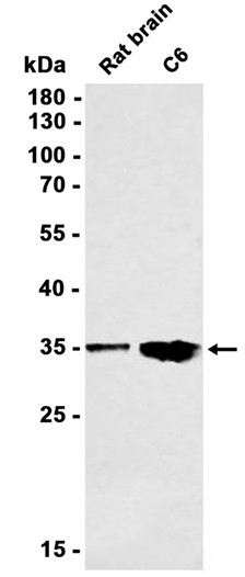 Western blot analysis of extracts from C6 cells and Rat brain tissue using