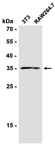 Western blot analysis of extracts from 3T3, RAW264.7 cells using