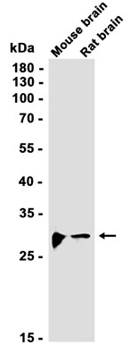 Western blot analysis of extracts from Mouse brain, Rat brain tissues using db11964 at 1:1000.