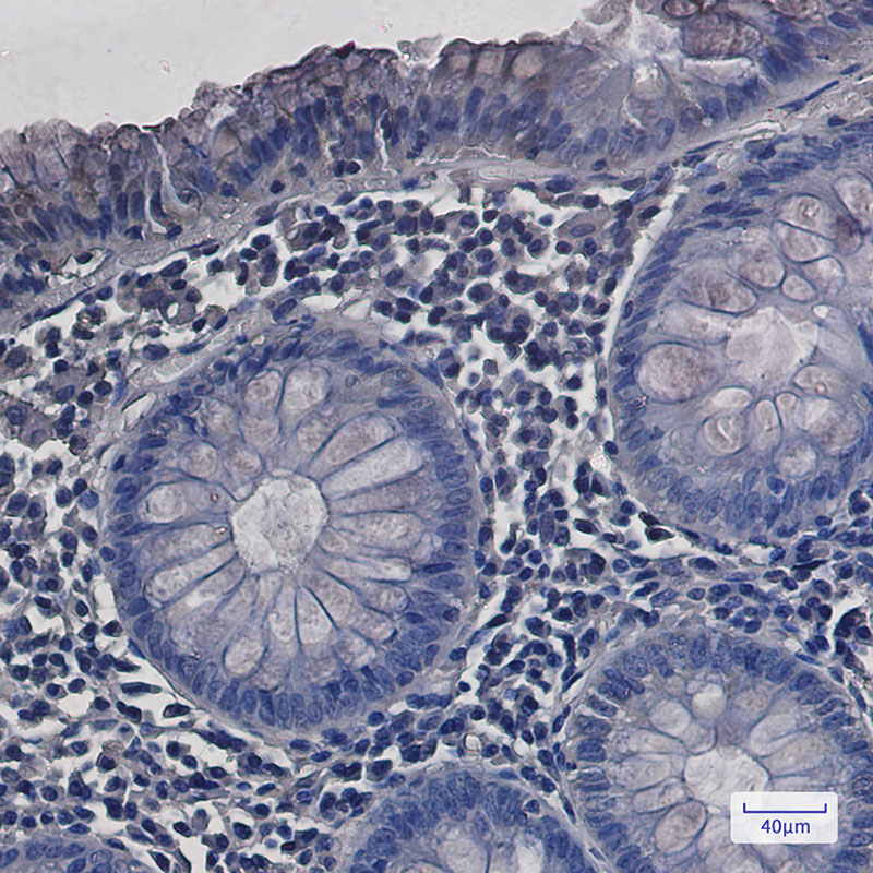 Immunohistochemical analysis of paraffin-embedded human colon cancer using db12017 antibody.