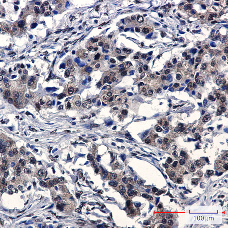 Immunohistochemical analysis of paraffin-embedded human lung cancer using db12027 antibody.