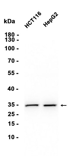 Western blot analysis of extracts from HCT116, HepG2 cells using db12029 at 1:1000.