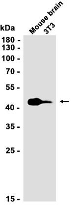 Western blot analysis of extracts from 3T3 cells and Mouse brain tissue using db12045 at 1:1000.
