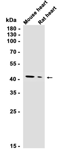 Western blot analysis of extracts from Mouse heart, Rat heart tissues using