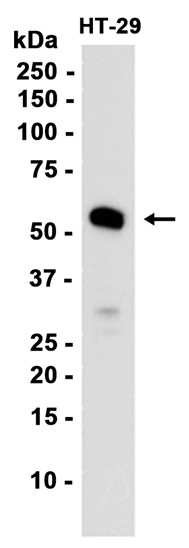 Western blot analysis of extracts from HT-29 cells using db12457 at 1:1000.