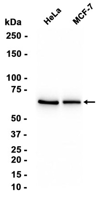 Western blot analysis of extracts from HeLa, MCF-7 cells using db12584 at 1:1000.