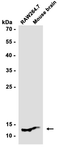 Western blot analysis of extracts from RAW264.7 cells and Mouse brain tissue using db12942 at 1:1000.