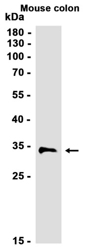 Western blot analysis of extracts from Mouse colon tissue using db12988 at 1:1000.