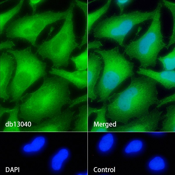 db13040 (1:100) at room temprature for 1h, followed by a further incubation at room temperature for 45min with Goat Anti Rabbit lgG (H+L)-AF488 (