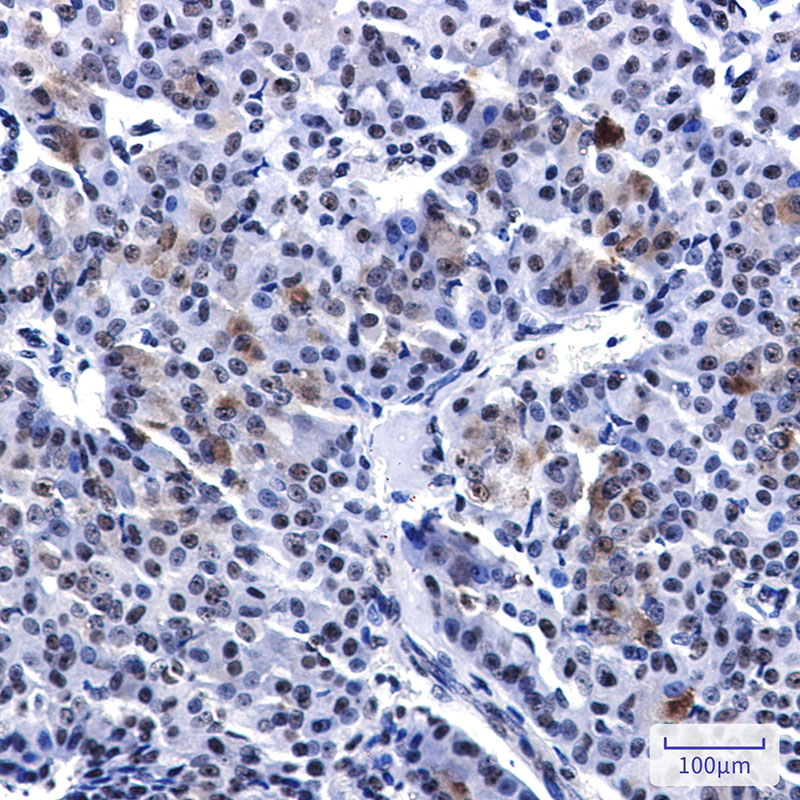 Immunohistochemical analysis of paraffin-embedded human breast cancer tissue using db13098 antibody.