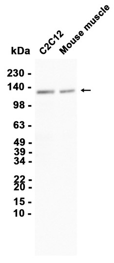 Western blot analysis of extracts from C2C12 cells and Mouse muscle tissue using