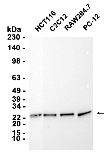 Western blot analysis of extracts from HCT116,C2C12,RAW264.7,PC-12 cells using db13170 at 1:3000.