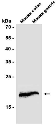 Western blot analysis of extracts from Mouse colon, Mouse gastric tissues using db13175 at 1:1000.