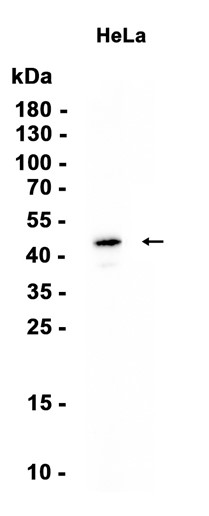 Western blot analysis of extracts from HeLa cells using db13280 at 1:1000.