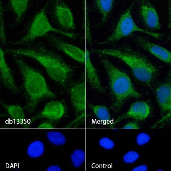 db13350 (1:100) at room temprature for 1h, followed by a further incubation at room temperature for 45min with Goat Anti Rabbit lgG (H+L)-AF488 (