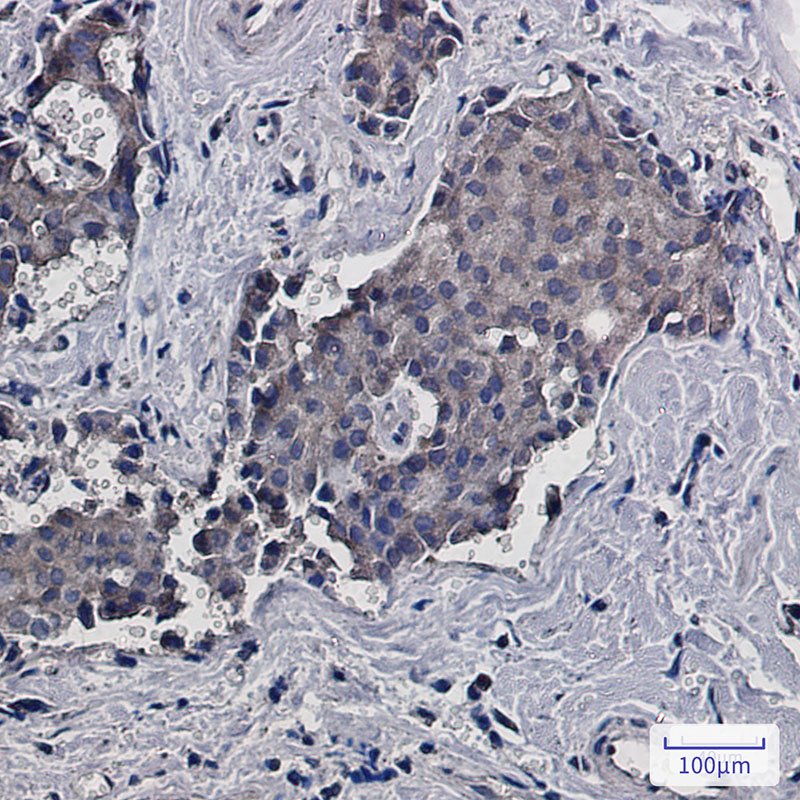 Immunohistochemical analysis of paraffin-embedded human breast cancer using db13392 antibody.
