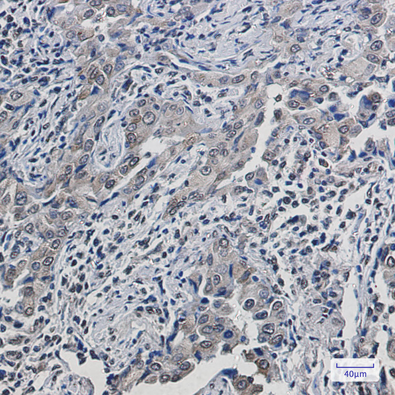 Immunohistochemical analysis of paraffin-embedded human lung cancer using db13803 antibody.