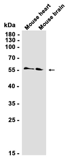 Western blot analysis of extracts from Mouse heart, Mouse brain tissues using db14310 at 1:1000.