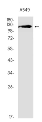 Western blot detection of TRIM24 in Hela,A549 cell lysates using TRIM24 antibody(1:1000 diluted).