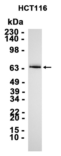 Western blot analysis of extracts from HCT116 cells using db14332 at 1:1000.