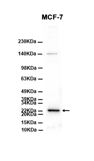 Western blot analysis of extracts from MCF-7 cells using db14334 at 1:3000.