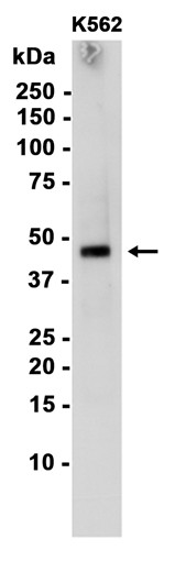 Western blot analysis of extracts from K562 cells using db14382 at 1:1000.