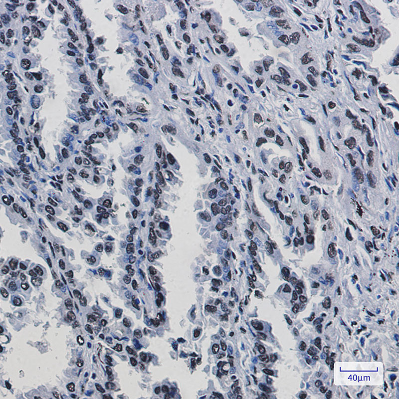 Immunohistochemical analysis of paraffin-embedded human lung cancer using db14397 antibody.