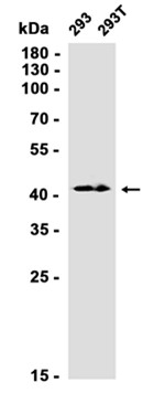 Western blot analysis of extracts from 293, 293T cells using db14460 at 1:1000.