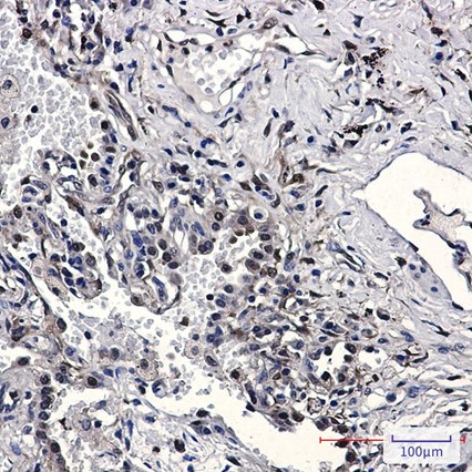 Immunohistochemical analysis of paraffin-embedded human lung cancer using db14804 antibody.