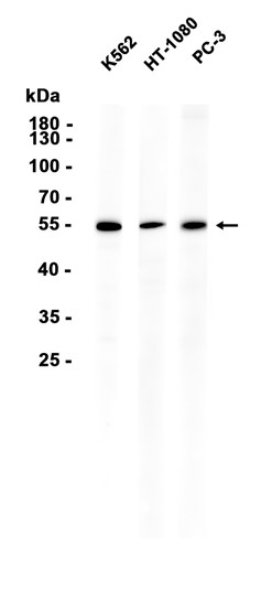 Western blot analysis of extracts from K562, HT-1080, PC-3 cells using db14804 at 1:1000.