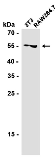 Western blot analysis of extracts from 3T3, RAW264.7 cells using db14804 at 1:1000.