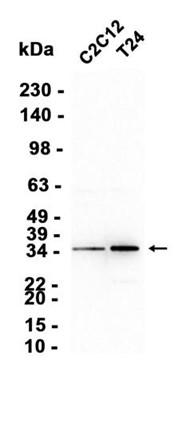 Western blot analysis of extracts from C2C12,T24 cells using db14834 at 1:3000.