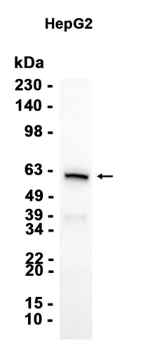 Western blot analysis of extracts from HepG2 cells using db15060 at 1:1000.