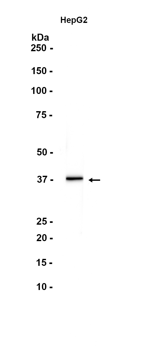 Western blot analysis of extracts from HepG2 cells using db15110 at 1:1000.