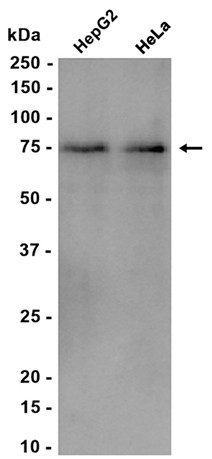 Western blot analysis of extracts from HepG2, HeLa cells using db15117 at 1:1000.