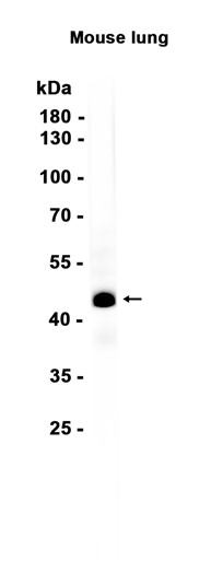 Western blot analysis of extracts from Mouse lung tissue using db15144 at 1:1000.